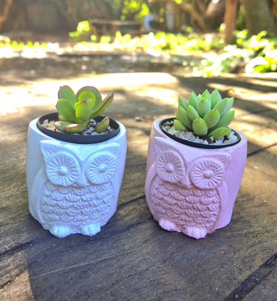 This charming, handcrafted owl pot brings a touch of whimsical wisdom to any space. Inside, a resilient succulent asks for little more than a sip of water and some sunshine every now and then, making it the perfect low-maintenance companion for your bathroom counter or a delightful gift for the plant-and-owl-obsessed.